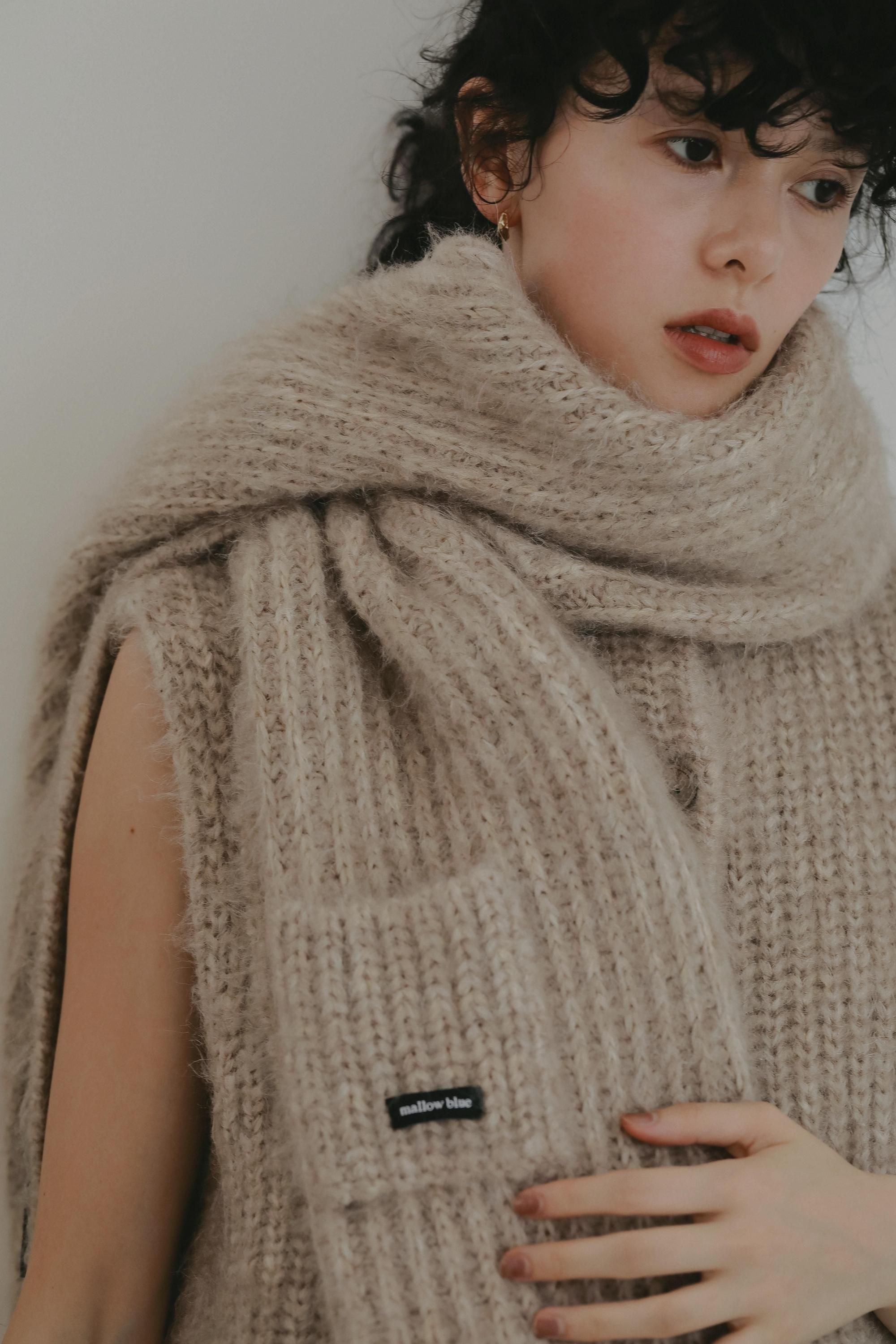 マフラーとして使用の際はボリュームたっぷりで首回りにアクセントをプラス。