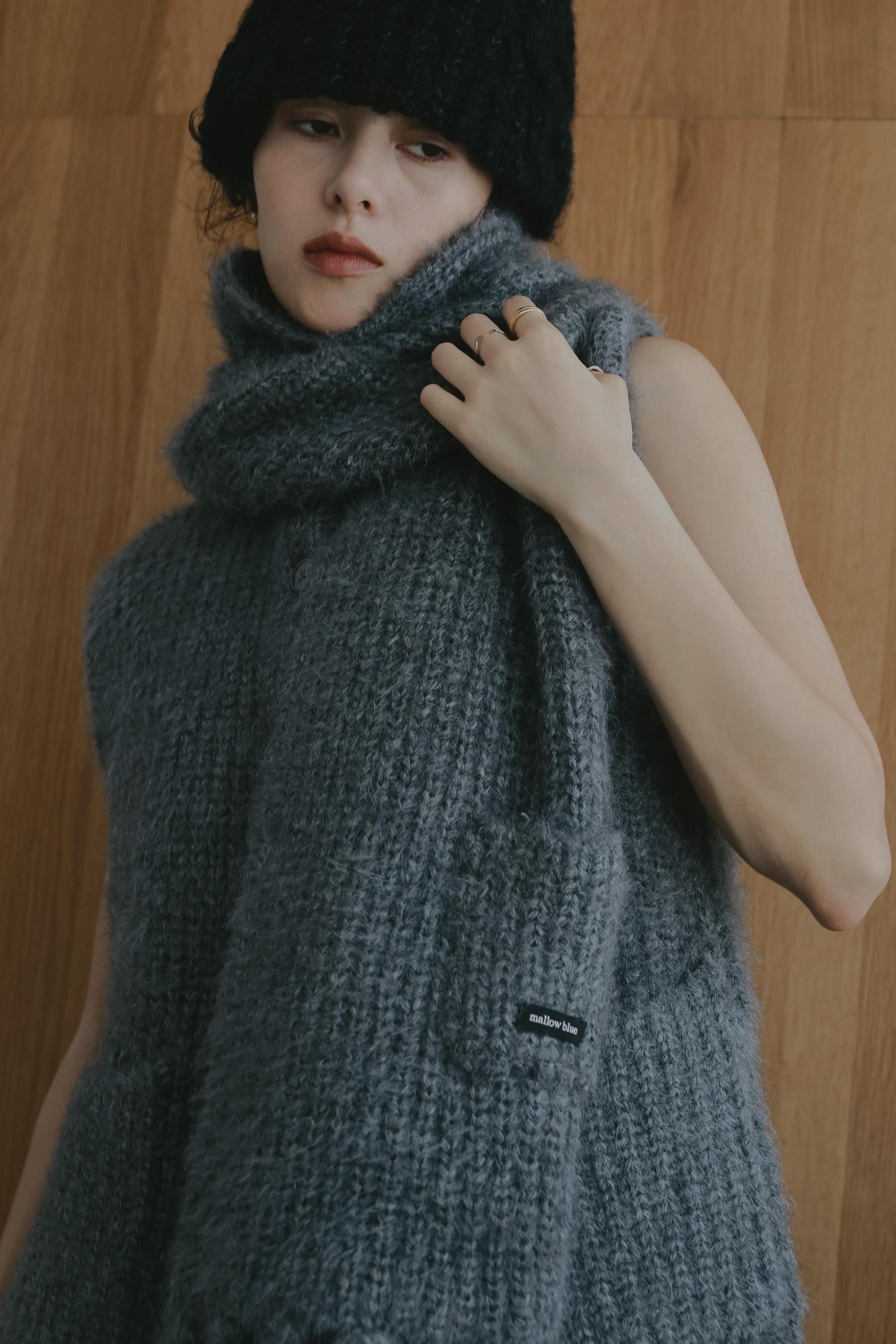 マフラーにも、袖を通してベストにもなる2WAYアイテム。